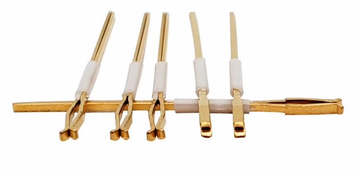 夾片針通常采用塑膠材質(zhì)與金屬材質(zhì)的組合,其中塑膠部分可能包含尼龍料和ABS,而金屬部分則可能是鈦合金銅,這種復合材質(zhì)不僅提供了良好的電氣性能,還能在高溫環(huán)境下保持穩(wěn)定性和耐用性,夾片探針的頭部鍍金為2U金,其他則為1U金,夾片針的耐高溫為150度-160度
