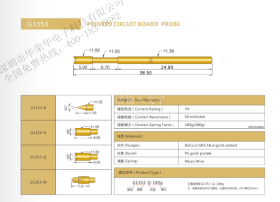 隨著工業(yè)發(fā)展和電子PCB的不斷升級,電子PCB測試探針也在研發(fā)各種規(guī)格的產(chǎn)品來滿足測試需求。從最早的單層板到目前發(fā)展的多層板喝軟板,由于不同大小的PCB板需要不同規(guī)格的PCB測試探針去滿足其測試,探針規(guī)格也不斷演化。如:P160、P75、PL75、PM75、PL50、G1353等。針頭添加了八爪皇冠頭、自我清洗三爪皇冠頭、Hb3帶膠管九爪針等等。探針的制作材料也越來多樣。多樣化的探針尺寸、頭型、彈力來滿足測試需求。