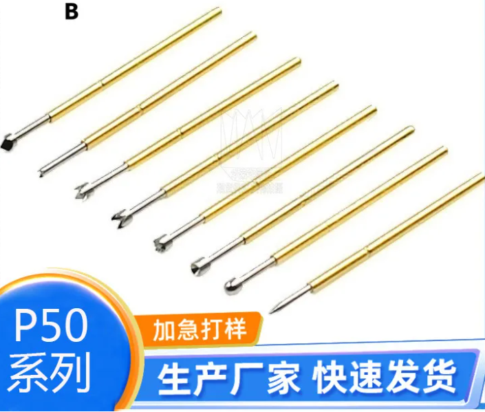 材料與結(jié)構(gòu):P50探針采用磷銅管鍍金、不銹鋼線彈簧以及鈹銅或SK4鍍金或銠制成的針桿,這些材料不僅保證了探針的導電性能,還提供了良好的機械強度和耐磨性。