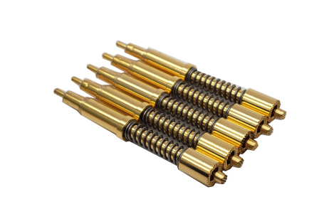 電流電壓針 420*4450:規(guī)格尺寸為 4.2*44.5mm,接觸部分使用銅鍍金材料,套管采用黃銅管鍍金,能承受高達 15 安培的電流,起始彈力為 39g,到達 2/3 行程時為 380g,全程為 480g,電阻值小于 30 毫歐姆。