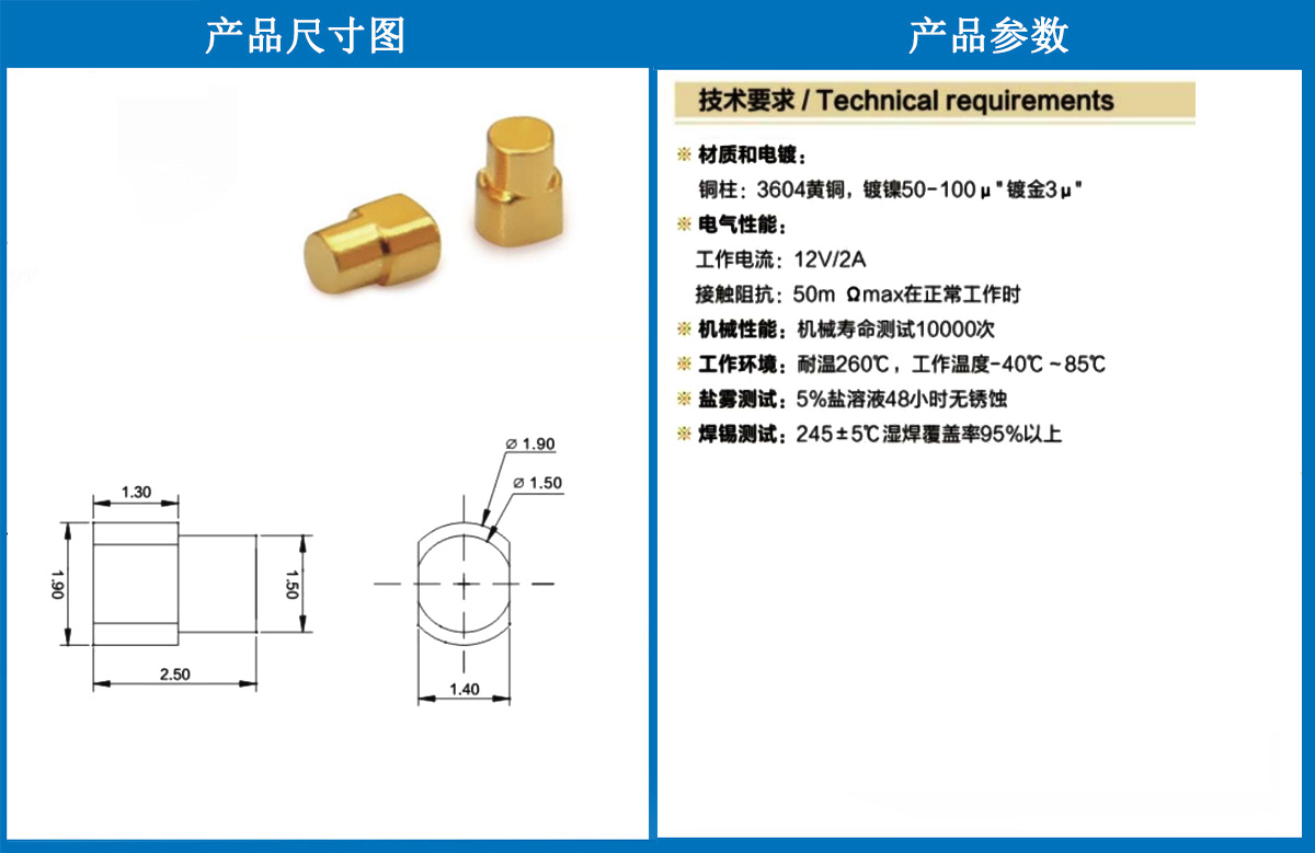 產(chǎn)品型號:1.9*2.5側(cè)焊銅柱