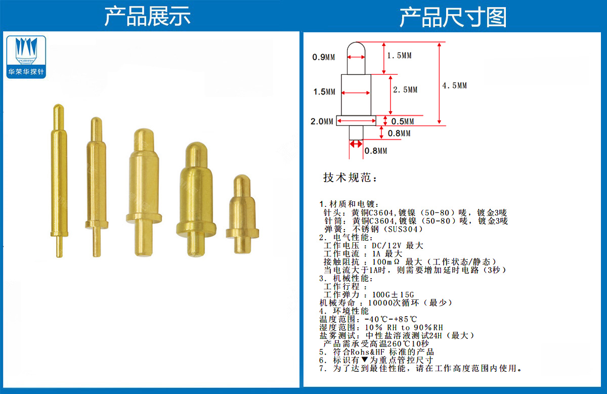 產(chǎn)品介紹:這個針通常用于智能手表,藍(lán)牙耳機(jī)上的有充電的功能,但是探針總體來說還是測試的