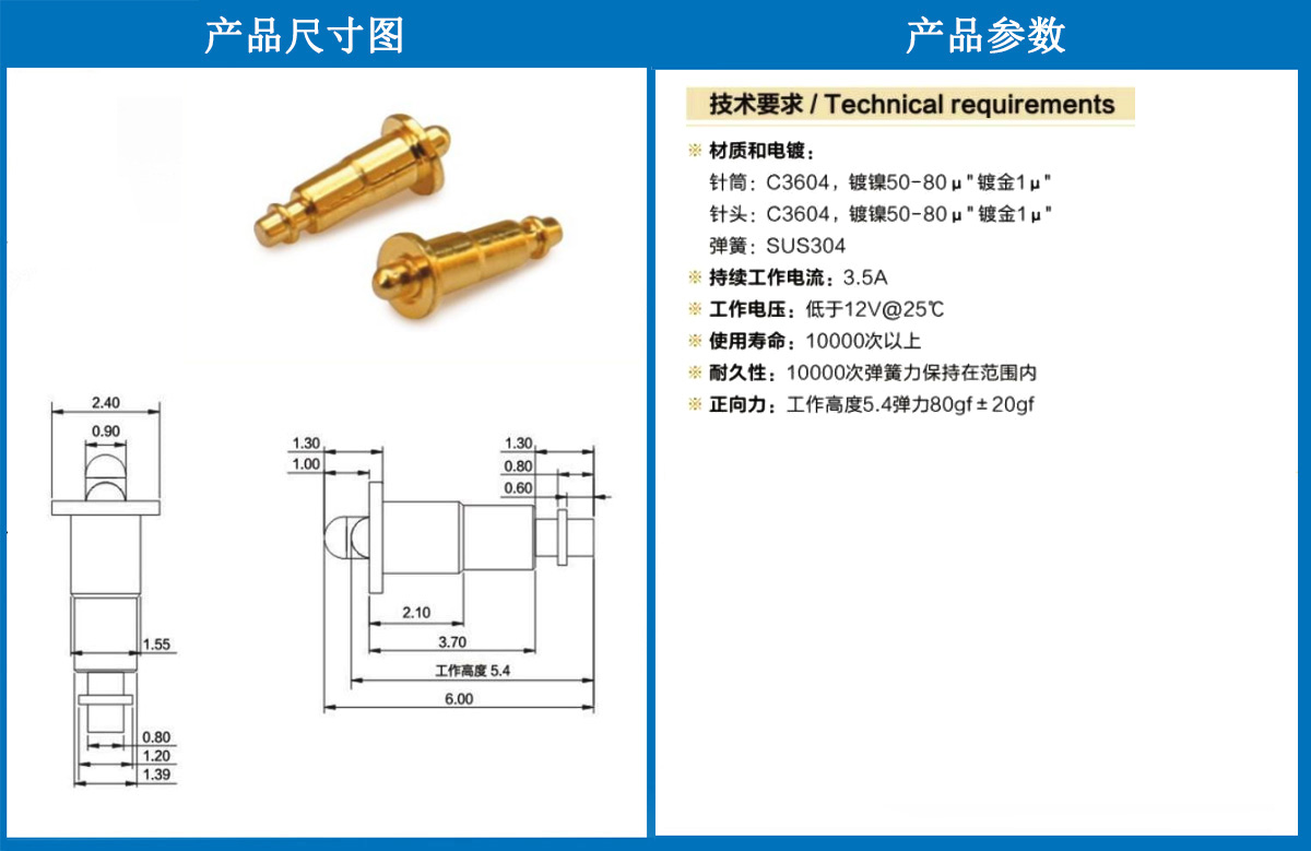 2.40*6.0電極針 當(dāng)前位置:首頁 » POGO PIN充電彈簧頂針 » 電極針