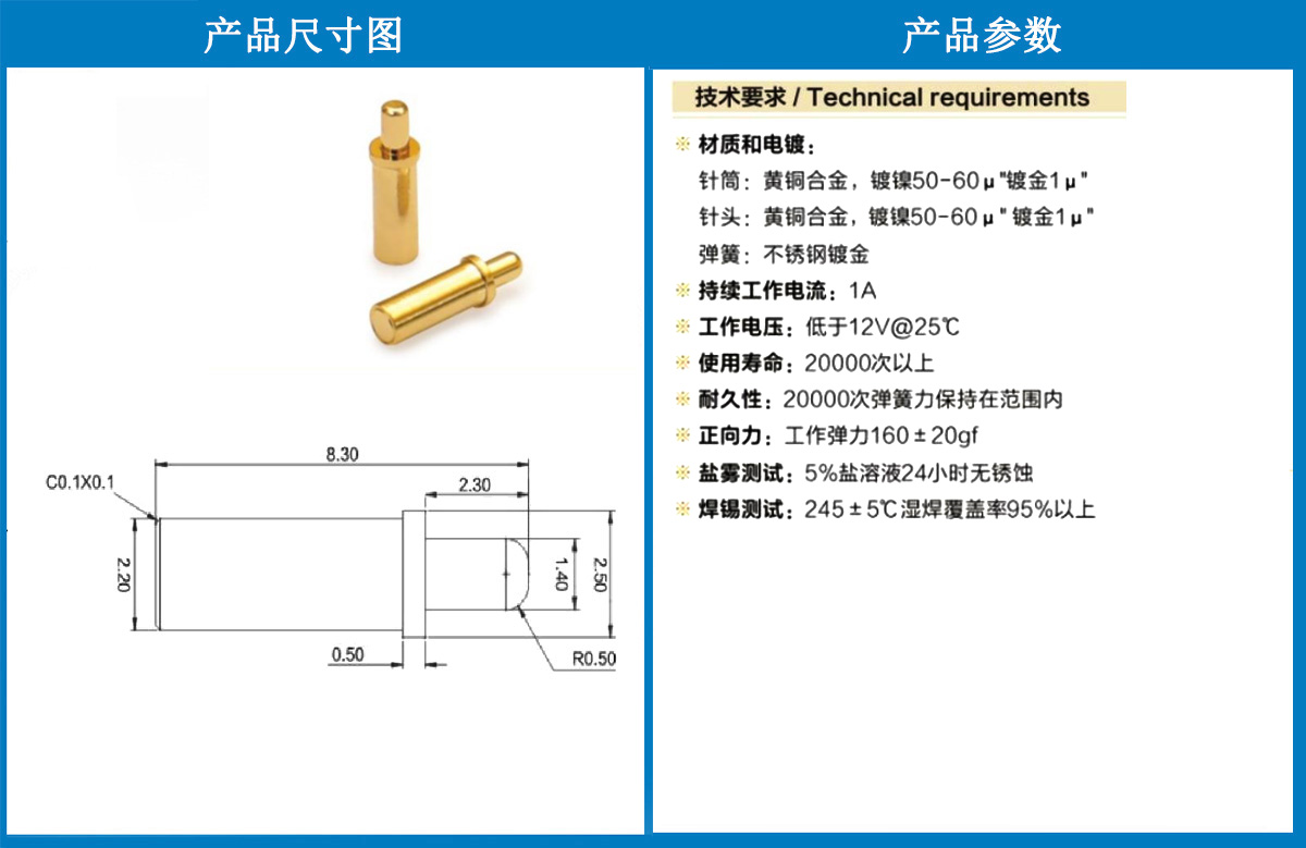 2.5*8.3電極針 當(dāng)前位置:首頁 » POGO PIN充電彈簧頂針 » 電極針