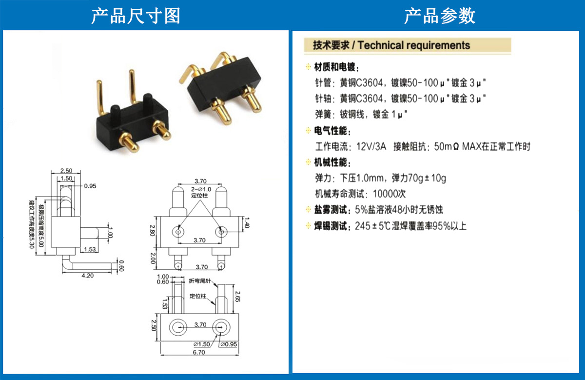 產(chǎn)品介紹:這個針通常用于智能手表,藍牙耳機上的有充電的功能,但是探針總體來說還是測試的