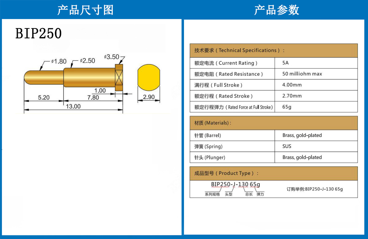 BIP250 當(dāng)前位置:首頁 » POGO PIN充電彈簧頂針
