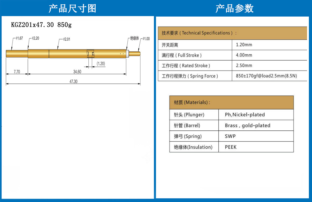 KGZ201x47.30 850g 當(dāng)前位置:首頁 » 開關(guān)針探針