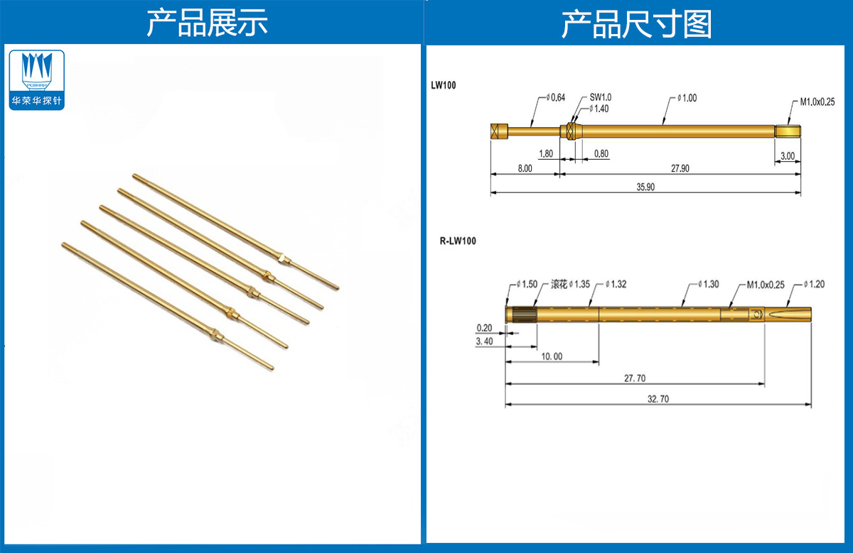 產(chǎn)品簡(jiǎn)介:LW100線束探針、1.0mm測(cè)試針、總長(zhǎng)35.90mm、彈簧針、頂針、探針