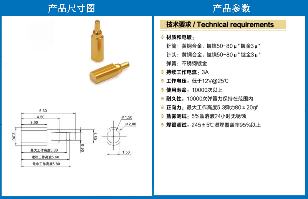 產(chǎn)品介紹:這個(gè)針通常用于智能手表,藍(lán)牙耳機(jī)上的有充電的功能,但是探針總體來(lái)說(shuō)還是測(cè)試的